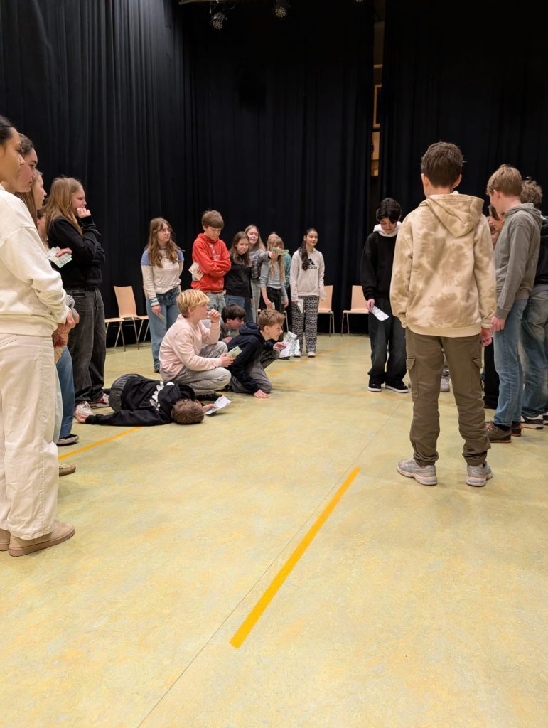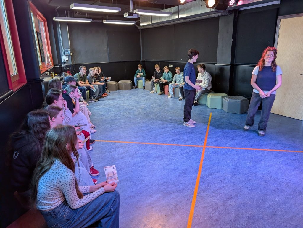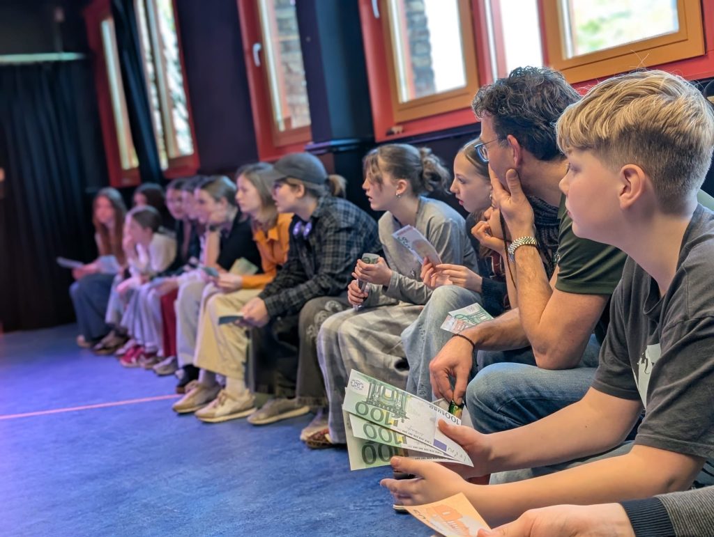 Tijdens de kunstweek kreeg klas 7 kreeg een workshop van theatergroep Wildpark. Het grote spel over geld en hoe ga je ermee om.